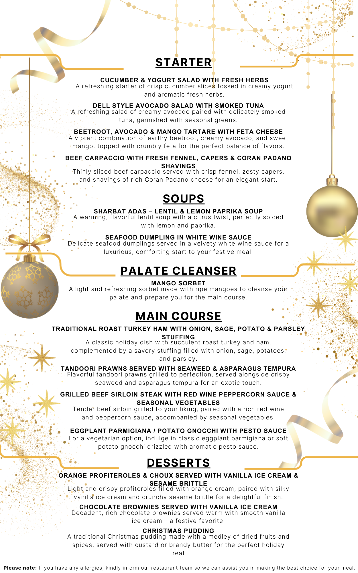 Please see the Menu for Christmas – Click Here