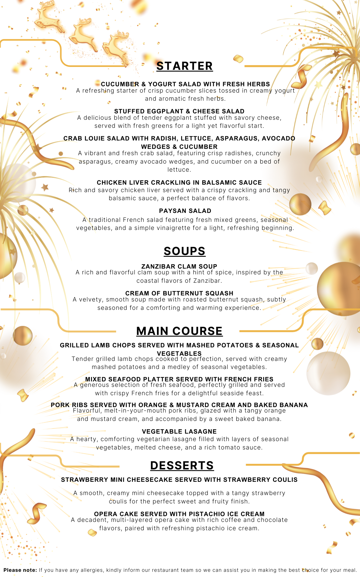 Please see the New Year Menu – Click Here